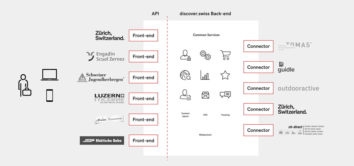 Mit discover.swiss können die verschiedenen Tourismusakteure Daten untereinander teilen, neue digitale Möglichkeiten nutzen, Angebote und Produkte optimieren sowie ihre Ressourcen effektiver einsetzen. Dadurch schafft man gemeinsam Grundlagen, die anspruchsvolle Gästebegleitung entlang der Customer Journey zu ermöglichen. Mit individuellen Lösungen, eigener Geschichte und eigenem Design, ganzheitlich, persönlich und mit Überraschungen. Zugeschnitten für spezifische Benutzergruppen mit lokalem oder regionalem Touch.